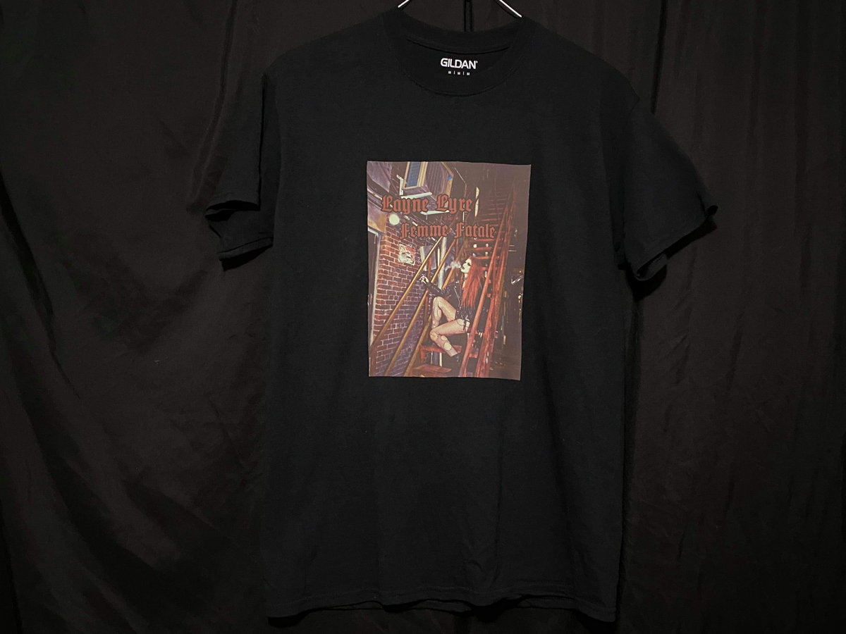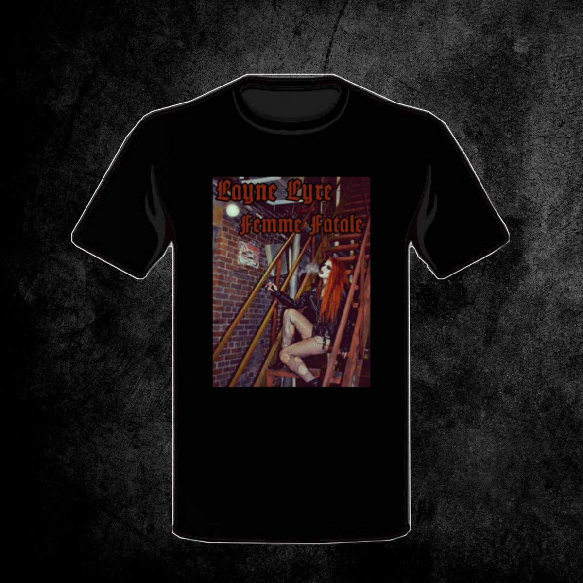 "Femme Fatale" Single Cover Art T-Shirt | $14.99Black t-shirt with the "Femme Fatale" single cover art. Materials: Cotton, Ink, HTV Care Instructions: Wash with cold water turned inside out. This item is heat transfer pressed. Dry on low or hang dry