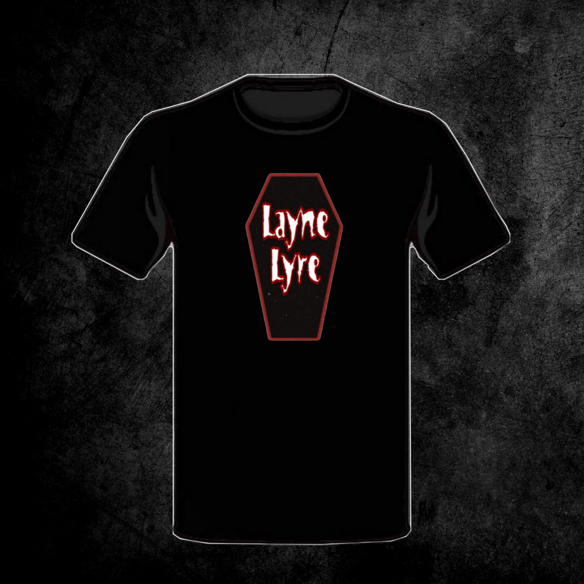Layne Lyre Coffin Full Name logo T-Shirt | $14.99Red and black HTV coffin logo with full band name. Hand pressed.